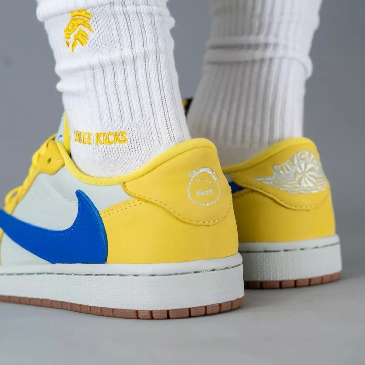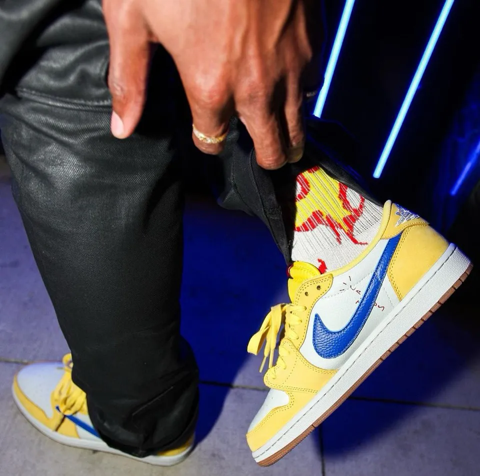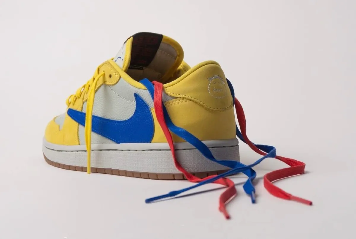 そして今回、“Medium Olive”に続くウィメンズモデルベースの新作として、カナリーイエローのカラーリングを纏った一足がリーク。ライトシルバーのレザーアッパーにカナリーイエローのスウェードオーバーレイを組み合わせ、外側サイドにはレーサーブルーの逆スウッシュロゴを配置。シューズ内側にはレッドカラーで“Cactus Jack”のロゴ、ヒールにはお馴染みのスマイリーフェイスとウィングロゴがあしらわれた。なお、このカラーリングの組み合わせは、トラヴィスの母校である『Elkins High School(エルキンズ高校)』のスクールカラーからインスパイアされている。