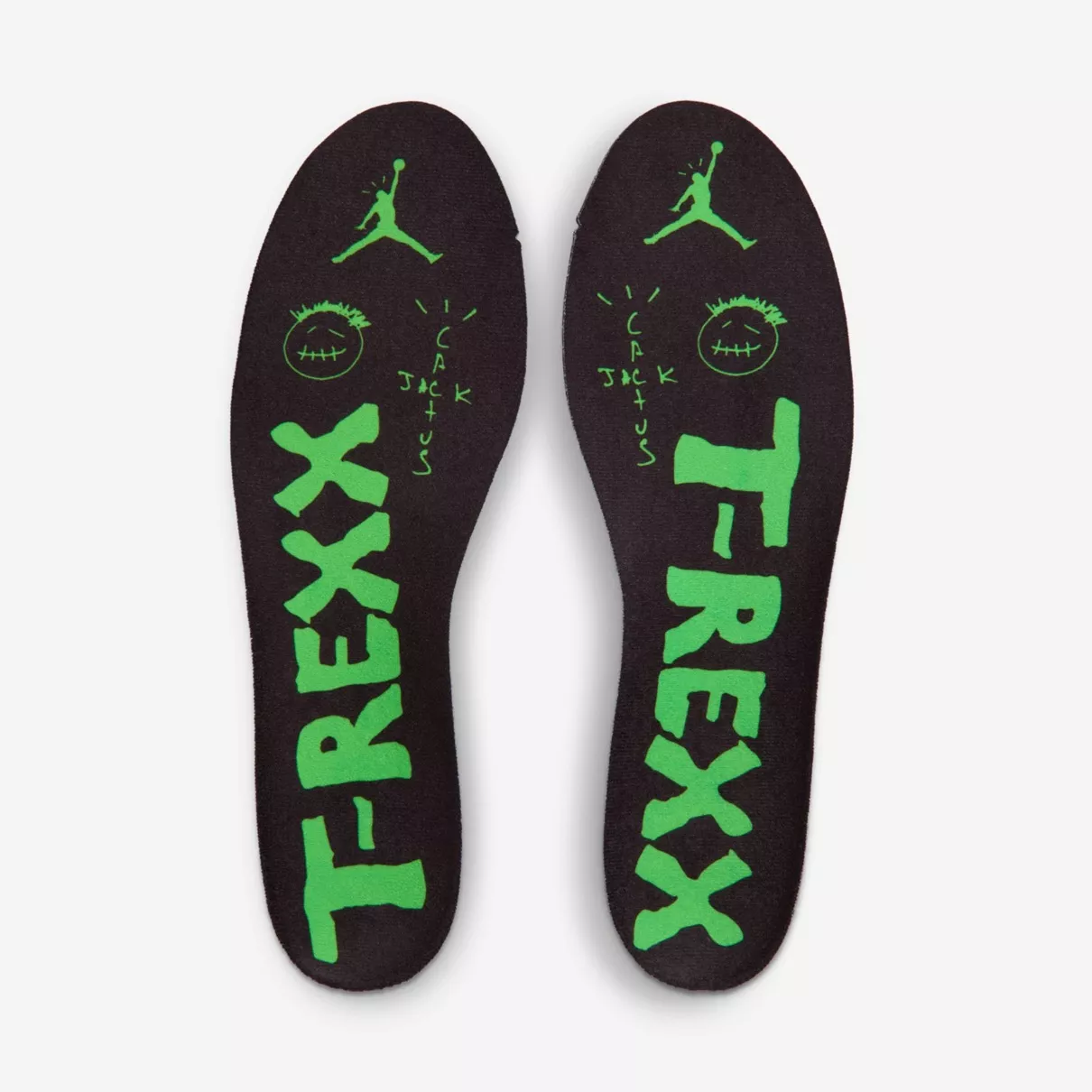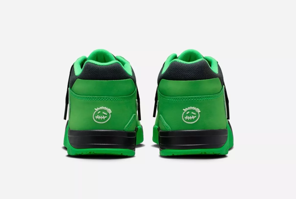 Cactus Jack(カクタスジャック)のアイコンや逆向きのスウッシュロゴが落とし込まれた同コラボは、リリースの度に界隈を賑わす屈指の人気シリーズ。今回リリースされるのは、トラヴィスのシグネチャーシューズ『Jordan Jumpman Jack TR(ジョーダン ジャンプマンジャック トレイナー)/CJ1 T-Rexx 』の新カラー。ロゴ入りのストラップパーツを搭載したシルエットをブラック&グリーンのカラーリングで仕上げ、アッパーはヌバックとメッシュの組み合わせで構築。